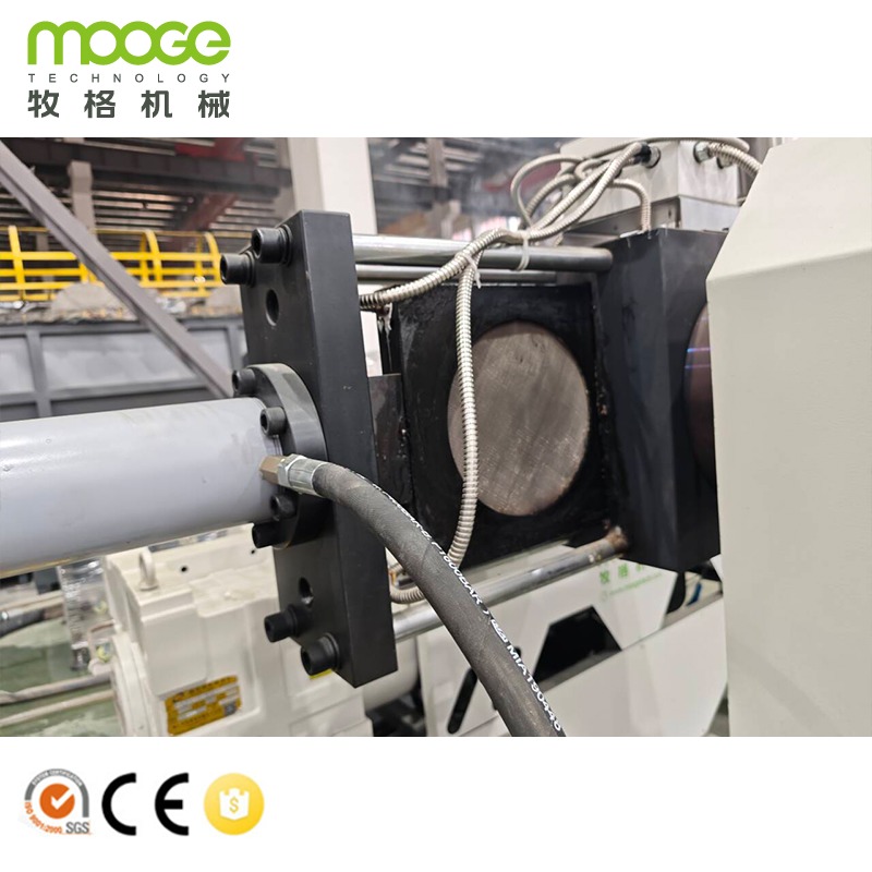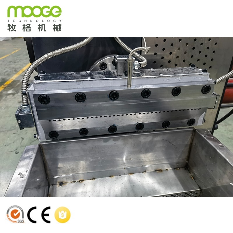 Diese Recycling Flasche Flakes Granulating Cutting Machine Plastik Pelletizing Line ist entworfen und hergestellt von MOOGE TECH, die weit verbreitet für Abfall-Kunststoff starres Material, wie HDPE, PP, PC verwendet wird,PS, ABS usw.