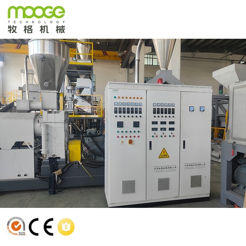 Diese Recycling-Pp-Pellet-Pe-Flocken-Granuliermaschine wurde von MOOGE TECH entwickelt und hergestellt und wird häufig für starre Kunststoffmaterialien wie HDPE, PP, PC, PS, ABS usw. verwendet.